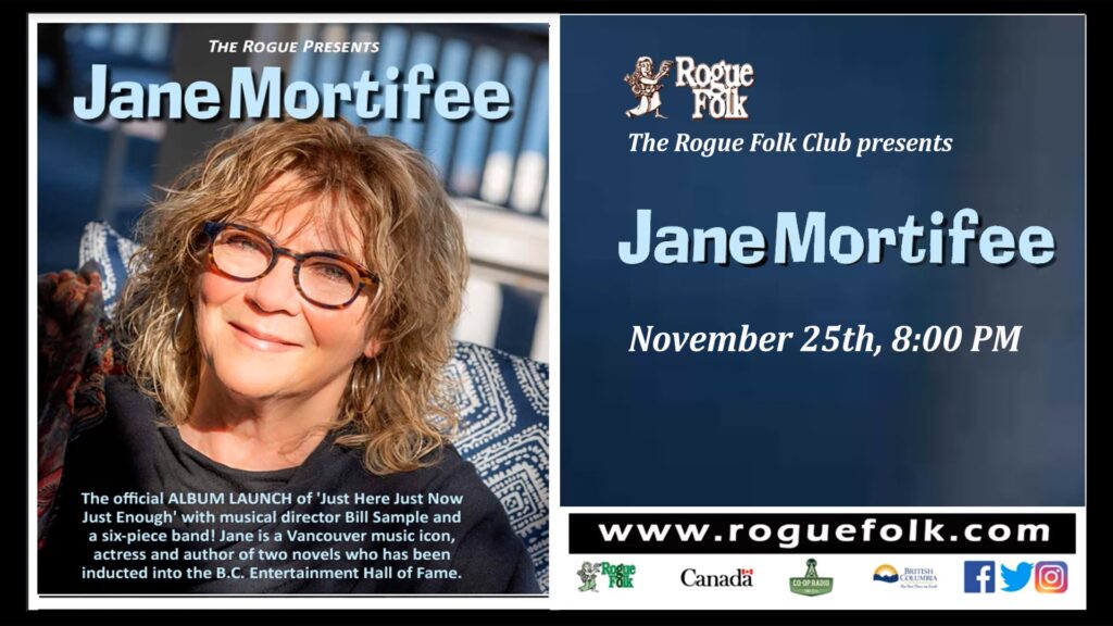 Join us for the official CD launch of Jane Mortifee’s new album ‘Just Here Just Now Just Enough’ produced by Bill Sample, mixed and mastered by Miles Foxx Hill. She will be joined by the talented musicians who were the music makers on this project: Bill Sample on keyboards and piano and background vocals, Miles Foxx Hill on bass, Tim Porter on guitar, Randall Stoll on drums, Tom Keenlyside on sax and Darlene Cooper on background vocals. Jane did the official launch for her last CD on the St James Hall stage 14 years ago. She’s happy to be back!